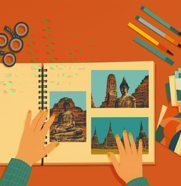 Capturez vos aventures autrement ! Entre photos, croquis et anecdotes, fabriquez un carnet qui garde la mémoire vivante de vos escapades, petit ou grand voyage.